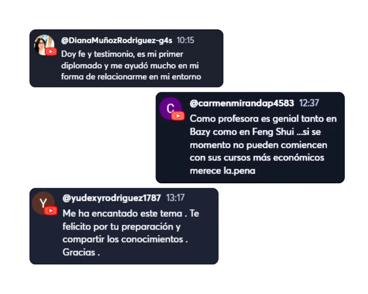 "Bazi se ha convertido en una de mis herramientas favoritas. Llevo tres años aplicándola en mi día a día y mi vida ha cambiado de forma muy positiva. Me reencontré conmigo misma, me reestructuré y sigo en un camino de sanación, feliz y consciente. Agradezco profundamente a Arlene por sus enseñanzas y lecturas."